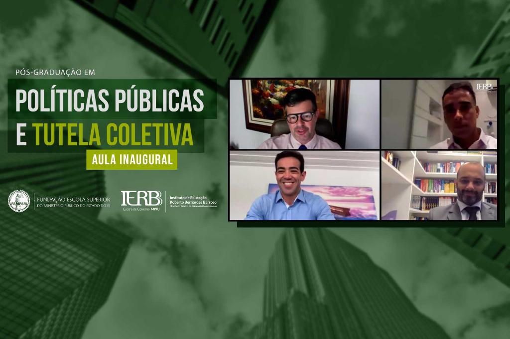 O Ministério Público do Estado do Rio de Janeiro (MPRJ), por meio do Instituto de Educação Roberto Bernardes Barroso (IERBB/MPRJ), promoveu nesta segunda-feira (08/03) a aula inaugural do curso de pós-graduação em Políticas Públicas e Tutela Coletiva. Sob o tema “Novas Perspectivas do Processo Coletivo: PLs 4.441/2020 e 4.778/2020”, o ministro do Tribunal de Contas da União, Bruno Dantas, foi o responsável por dar a palestra de abertura. O projeto de lei 4.778/2020 define novas regras para a ação civil pública e de defesa dos interesses difusos e tem como apenso o PL 4.441/2020, que disciplina o procedimento da nova Lei de Ação Civil Pública e encontra-se, atualmente, em tramitação na Câmara dos Deputados.