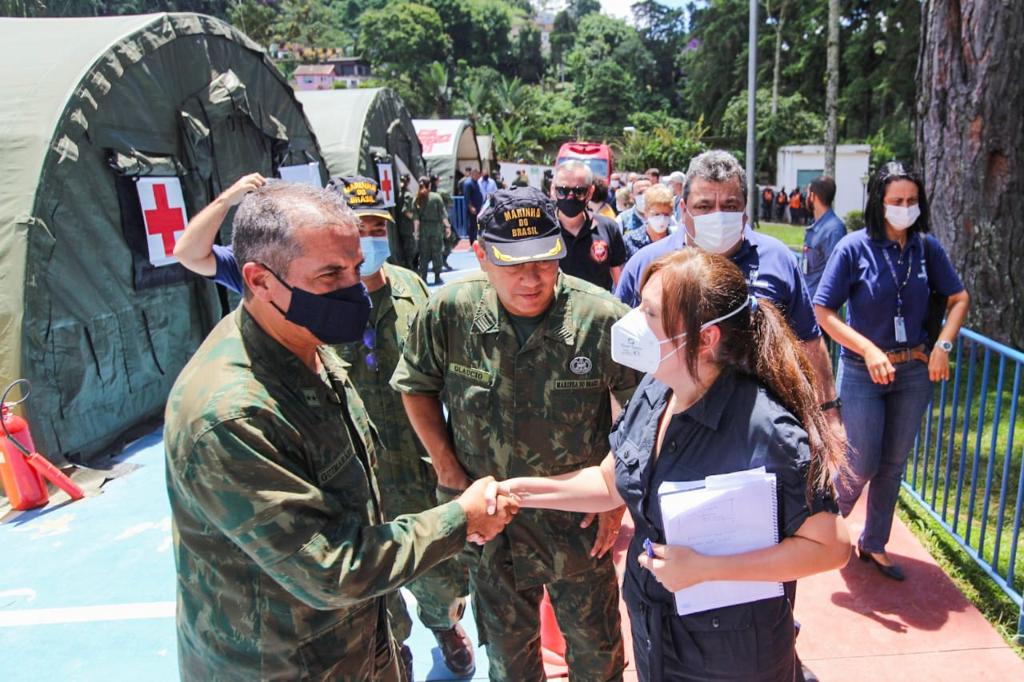 O MPRJ realizou, também na manhã desta terça-feira (22/02), vistoria no Hospital de Campanha da Marinha, montado em Petrópolis e destinado ao atendimento ambulatorial de casos leves. Na ocasião, técnicos do GATE/MPRJ verificaram que a estrutura do local está adequada e apuraram o fluxo de encaminhamento dos pacientes para outras unidades Casos urgentes ou graves estão sendo encaminhados para UPAs em funcionamento, como a Cascatinha e a Itaipava. A vistoria foi realizada pela 2ª Promotoria de Justiça de Tutela Coletiva do Núcleo Petrópolis, em parceria com o MPF.