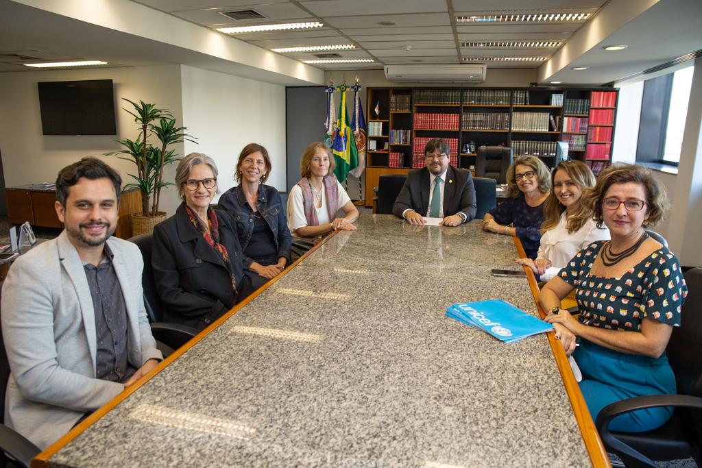 Participaram do encontro, no gabinete da Procuradoria-Geral de Justiça, a coordenadora-geral de Promoção da Dignidade da Pessoa Humana (COGEPDPH/MPRJ), Patrícia Leite Carvão, a coordenadora do Centro de Apoio Operacional das Promotorias de Justiça de Tutela Coletiva de Proteção à Educação (CAO Educação/MPRJ), Renata Carbonel, a representante-adjunta do UNICEF no Brasil, Paola Babos, a coordenadora do UNICEF na Região Sudeste, Luciana Phebo, o consultor da Área de Proteção à Criança e Adolescente do UNICEF no Brasil, Marcos Kalil, e a especialista de Comunicação do UNICEF no país, Immaculada Prieto.