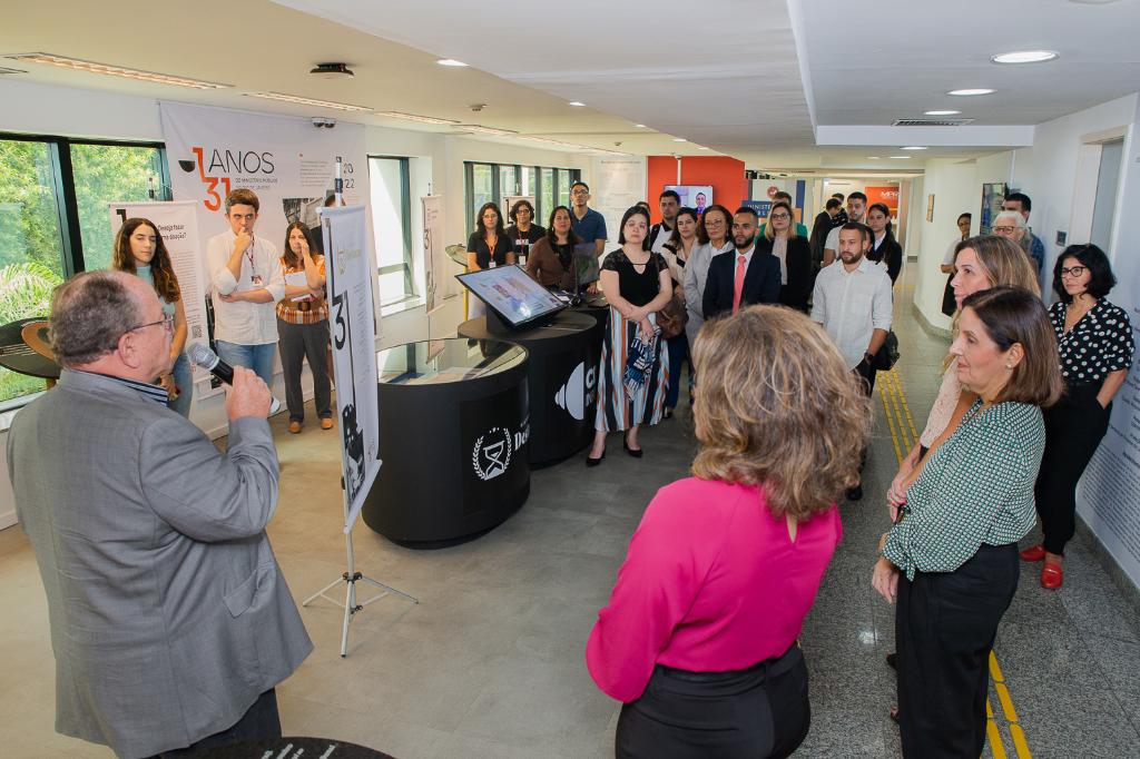 O Ministério Público do Estado do Rio de Janeiro (MPRJ), por meio do Centro de Memória Procurador de Justiça João Marcello de Araújo Júnior (CDM/MPRJ), recebeu, na tarde de segunda-feira (24/10), os estudantes de Direito do Centro Universitário Universus Veritas (Univeritas) para uma visita guiada à exposição "131 anos do Ministério Público no Rio de Janeiro". Na ocasião, os alunos tiveram a oportunidade de entrar em contato com a história da instituição, além de conhecerem, de maneira mais detalhada, o trabalho desenvolvido por procuradores e promotores de Justiça junto à sociedade.