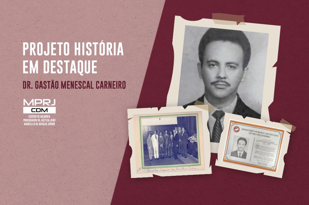 Gastão Menescal Carneiro nasceu no dia 01 de dezembro de 1925, em Niterói. Atuou no Ministério Público do antigo Estado do Rio pela primeira vez em 1951, nomeado promotor de Justiça substituto na Comarca de Itaboraí, permanecendo no cargo por oito meses. Retornou ao Ministério Público no concurso de 1958, sendo a posse como promotor de Justiça em 1960. Atuou nas comarcas de Rio Bonito, Volta Redonda e Teresópolis, tendo grande destaque nos tribunais do júri até ser designado para a 1ª Curadoria-Geral da Comarca de Campos, em 1969.