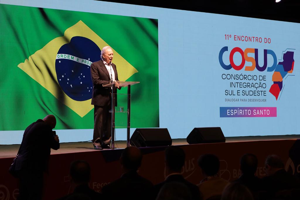 O procurador-geral de Justiça, Luciano Mattos, participou, na quinta-feira (08/08), da abertura da 11ª edição do Consórcio de Integração Sul e Sudeste (COSUD), na região de Pedra Azul, no município de Domingos Martins, no Espírito Santo. O COSUD, que reúne governadores e gestores dos sete estados das regiões Sul e Sudeste (Rio de Janeiro, São Paulo, Espírito Santo, Minas Gerais, Rio Grande do Sul, Paraná e Santa Catarina), foi criado em 2019 para fortalecer a cooperação entre os governos das regiões e impulsionar ações socioeconômicas e ambientais.