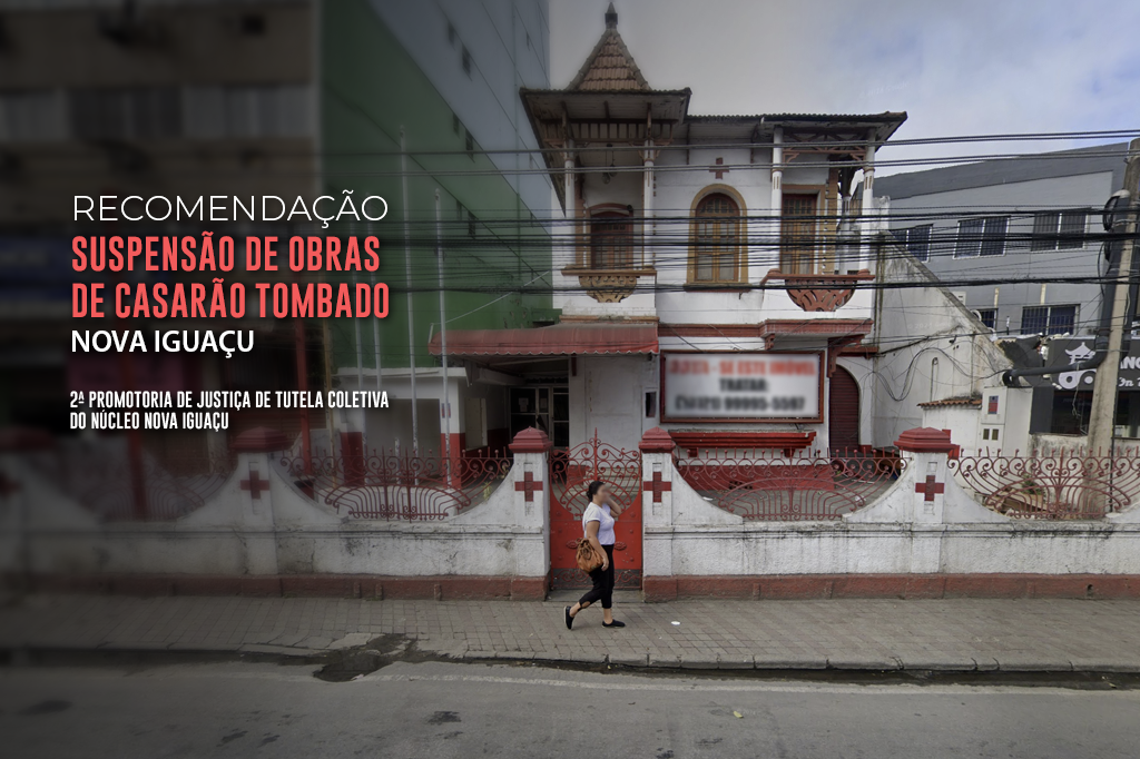 O Ministério Público do Estado do Rio de Janeiro (MPRJ), por meio da 2ª Promotoria de Justiça de Tutela Coletiva do Núcleo Nova Iguaçu, expediu, na segunda-feira (28/04), Recomendação para que o Município de Nova Iguaçu determine a suspensão imediata de qualquer obra ou intervenção no casarão da Cruz Vermelha localizado na Rua Coronel Bernardino de Melo, no centro da cidade.