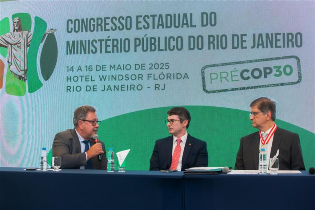 O procurador-geral de Justiça do Estado do Rio de Janeiro, Antonio José Campos Moreira, e o procurador-geral da República, Paulo Gonet, participaram do encerramento do último dia de atividades do Congresso Estadual do MPRJ – Pré-COP 30, nesta sexta-feira (16/05). O evento, promovido pela Amperj e pela Conamp, reuniu diversas autoridades e especialistas para debater temas de interesse social e fortalecer a atuação do Ministério Público.