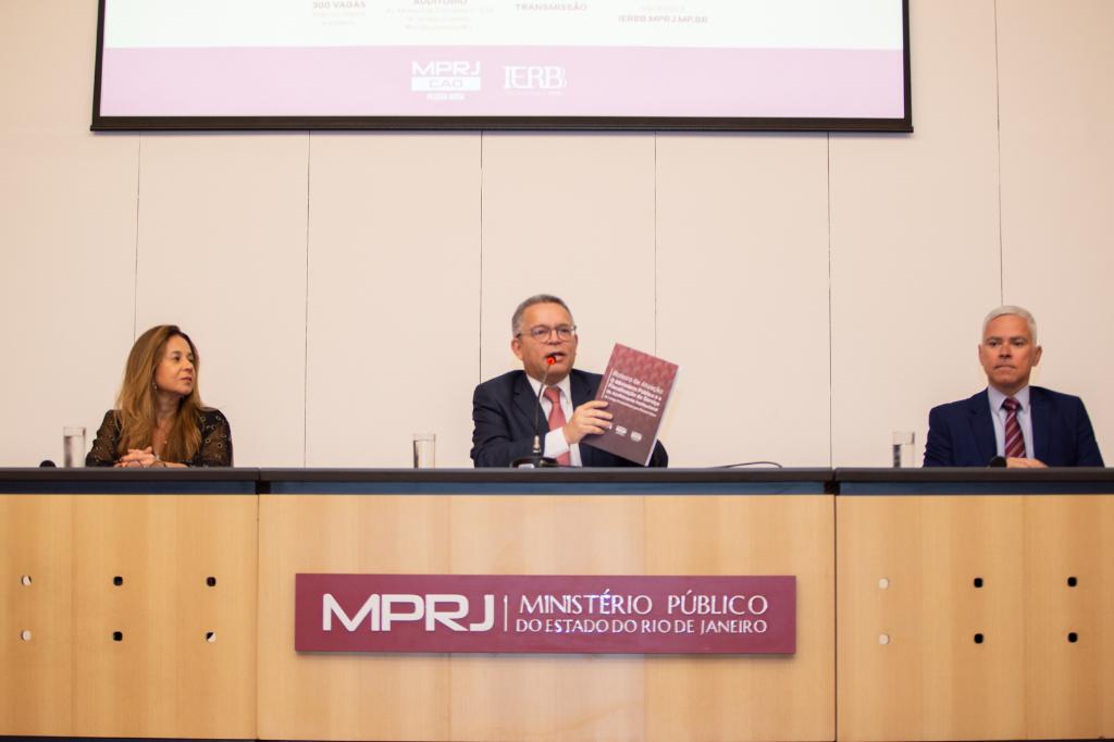 O Ministério Público do Estado do Rio de Janeiro (MPRJ), por meio do Centro de Apoio Operacional das Promotorias de Justiça da Pessoa Idosa (CAO Pessoa Idosa/MPRJ), promoveu, nesta sexta-feira (06/06), em evento no auditório do edifício-sede da instituição, o lançamento da Cartilha de Fiscalização de ILPIs (Roteiro de Atuação: O MP e a fiscalização de ILPIs). A mesa de abertura contou com a participação de Luiz Cláudio Carvalho de Almeida e Elisa Maria Azevedo Macedo, coordenador e subcoordenadora do CAO Pessoa Idosa/MPRJ; e Alexandre Joppert, promotor de Justiça e vice-diretor do Instituto de Educação Roberto Bernardes Barroso (IERBB/MPRJ).