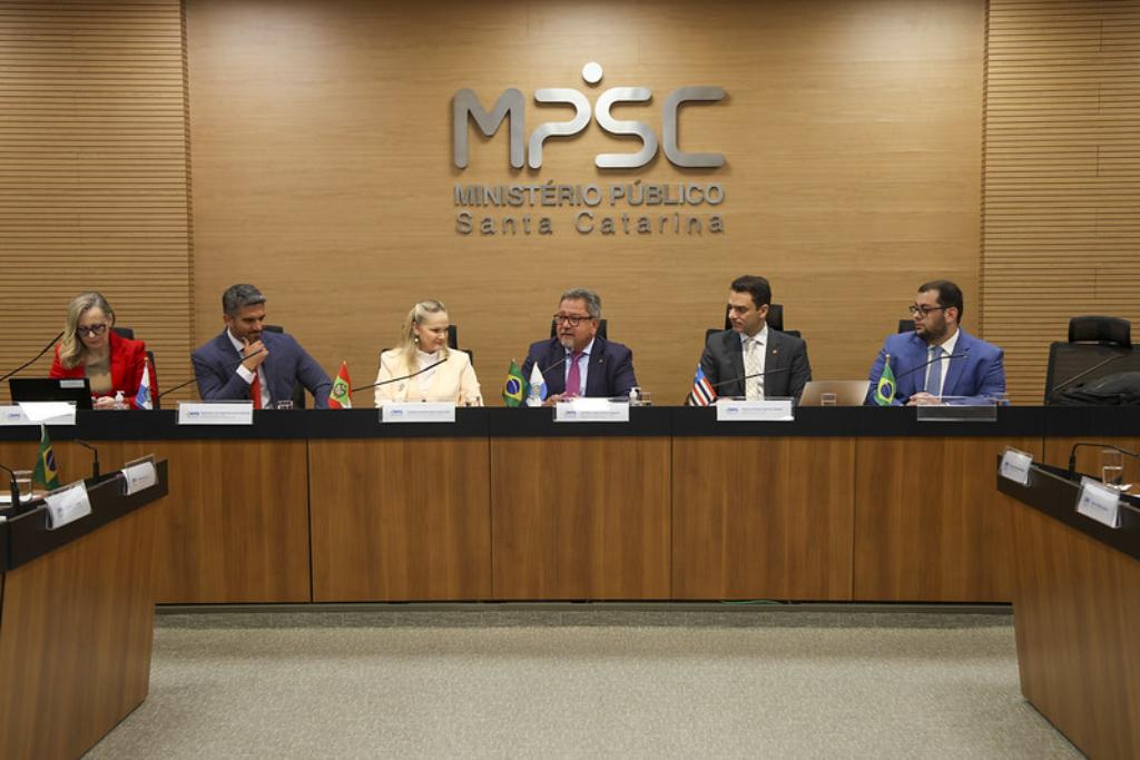 O procurador-geral de Justiça do Ministério Público do Estado do Rio de Janeiro (MPRJ), Antonio José Campos Moreira, presidiu, nesta sexta-feira (08/08), na sede do Ministério Público de Santa Catarina (MPSC), a segunda reunião ordinária do Grupo Nacional de Controle Externo da Atividade Policial do Conselho Nacional de Procuradores-Gerais (GNCEAP/CNPG). O encontro teve como objetivo fortalecer a atuação do Ministério Público nessa área, promovendo o diálogo e a troca de experiências em busca de soluções efetivas para desafios que são comuns às diferentes unidades do MP. Os trabalhos foram conduzidos por Antonio José, com apoio do secretário-executivo do grupo, o promotor de Justiça Francisco Cardoso, coordenador de Inteligência da Investigação (CI2/MPRJ). A anfitriã do evento, a procuradora-geral de Justiça do MPSC, Vanessa Cavallazzi, participou da abertura do evento.