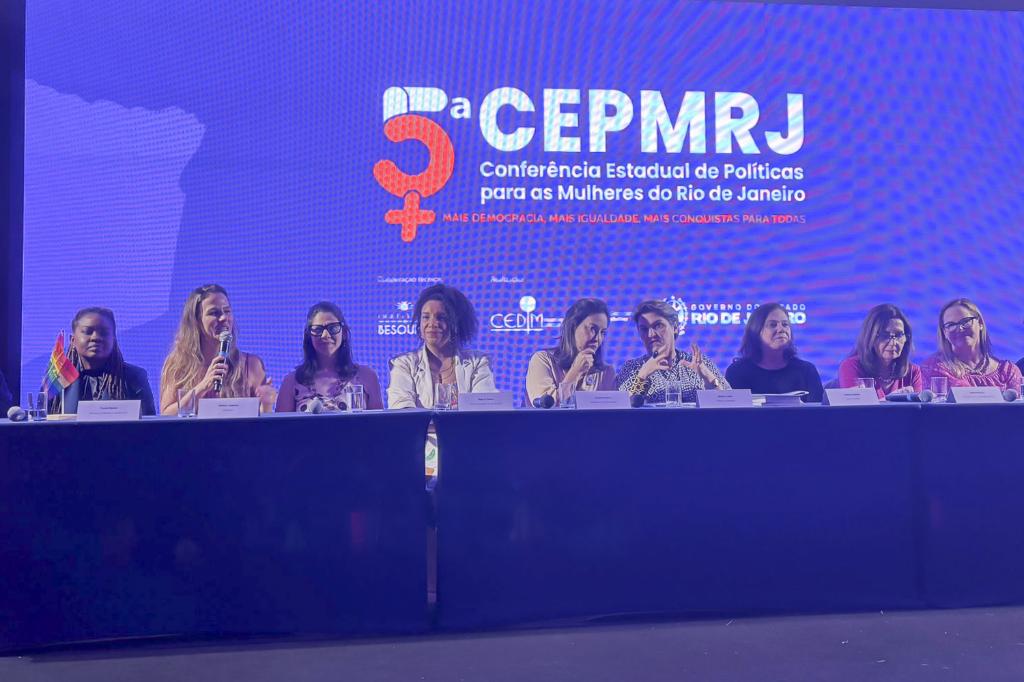 A coordenadora do Centro de Apoio Operacional das Promotorias de Justiça de Combate à Violência Doméstica e Familiar contra a Mulher (CAO Violência Doméstica e Familiar contra a Mulher/MPRJ), Isabela Jourdan, e a subcoordenadora, Eyleen Marenco, participaram nesta sexta-feira (22/08), da abertura da 5ª Conferência Estadual de Políticas para as Mulheres do Rio de Janeiro. A abertura do evento, que acontece até domingo (24/08) e debate propostas de fortalecimento às políticas públicas voltadas para as mulheres no estado teve as presenças da ministra das Mulheres, Márcia Lopes, das deputadas federais Soraia Santos e Benedita da Silva, da secretária de Estado da Mulher, Heloísa Aguiar, e das deputadas estaduais Renata Souza e Martha Rocha, além de representantes do Tribunal de Justiça do Estado do Rio de Janeiro e da Defensoria Pública.