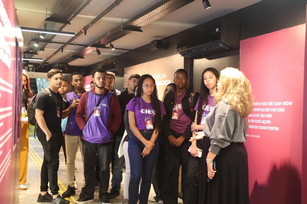 Em seguida, os alunos visitaram as exposições “Congressos e Encontros” e “50 anos da fusão”, guiados pela historiadora Nayara Santos e pela estagiária de História Anne Marrie Mesquita, que explicaram o campo de atuação do MPRJ e o trabalho de preservação e difusão do acervo histórico do CDM.