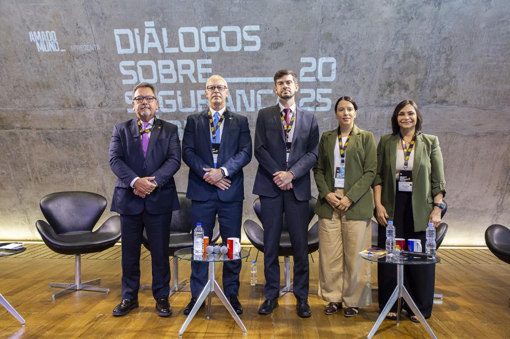 O painel foi mediado pela jornalista Vera Araújo e contou ainda com o secretário de Segurança Pública do Estado, Victor Santos; o coordenador de Repressão a Crimes Violentos da Polícia Federal, delegado Renato Beni; e a diretora de projetos do Instituto Sou da Paz, Natália Pollachi.