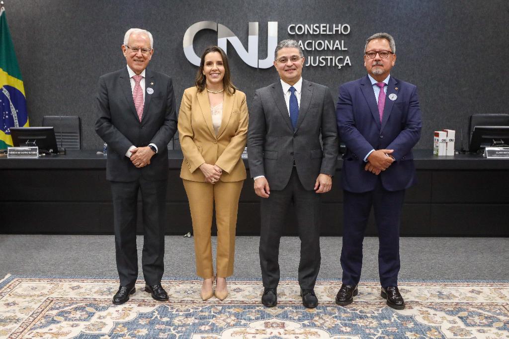 O procurador-geral de Justiça, Antonio José Campos Moreira, participou da solenidade de posse de três novas conselheiras do Conselho Nacional do Ministério Público (CNMP) para o biênio 2025-2027. Foram empossadas a promotora de Justiça do Ministério Público do Distrito Federal e Territórios (MPDFT) Fabiana Costa Oliveira Barreto; a advogada Greice Fonseca Stocker; e a juíza de direito do Tribunal de Justiça do Estado do Rio Grande do Sul (TJRS), Karen Luise Vilanova Batista de Souza. A cerimônia ocorreu nesta segunda-feira (27/10), na sede do CNMP, em Brasília. Com a posse das três integrantes, o CNMP passa a contar com a maior composição feminina de sua história, totalizando cinco conselheiras.