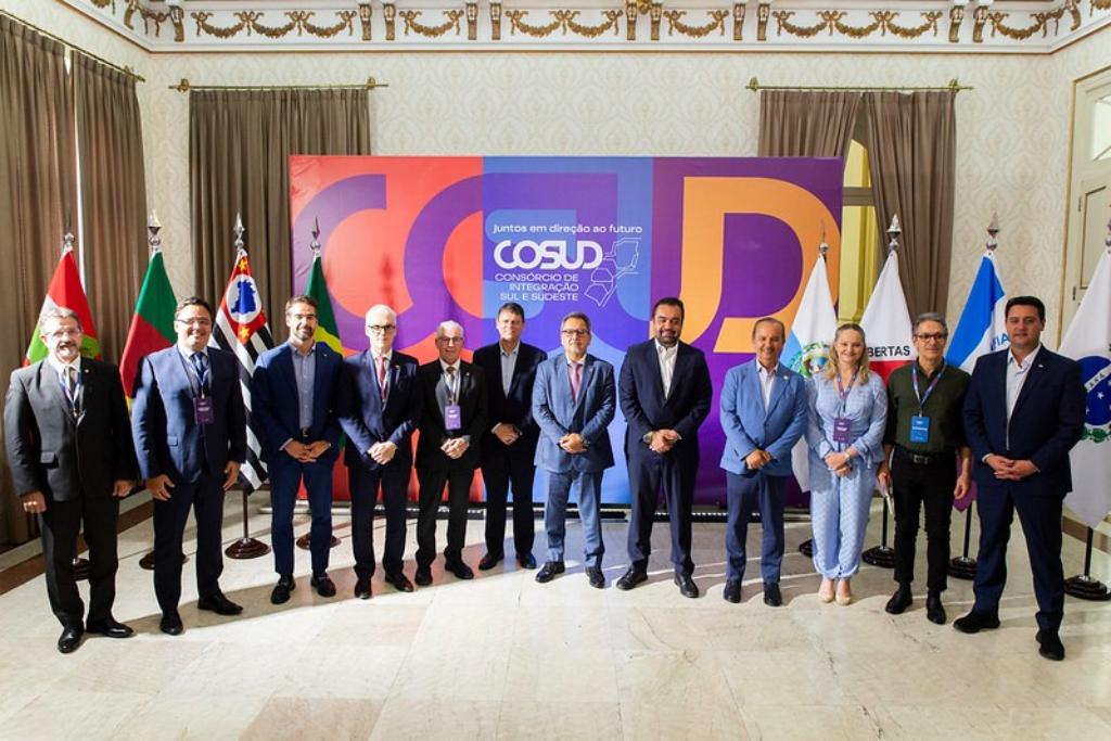 Criado em Belo Horizonte (MG), em 16 de março de 2019, o Consórcio de Integração Sul e Sudeste (COSUD) tem como objetivo consolidar uma agenda permanente de cooperação entre os governos das duas regiões, alinhada às demandas econômicas, sociais e ambientais. Com uma população de 119 milhões de habitantes — o equivalente a 70% do PIB nacional, segundo o IBGE —, os estados do Sul e Sudeste concentram temas prioritários como segurança pública, combate ao contrabando, sistema prisional, saúde, desburocratização, turismo, educação, desenvolvimento econômico, logística, transportes, inovação e tecnologia.