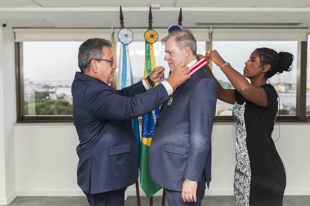 O ministro do Supremo Tribunal Federal Dias Toffoli recebeu, nesta segunda-feira (08/12), o Colar do Mérito do Ministério Público do Estado do Rio de Janeiro (MPRJ), maior honraria concedida pela instituição. A entrega foi antecipada, uma vez que o ministro não poderá comparecer à solenidade oficial de outorga do colar, marcada para o dia 15 de dezembro. O procurador-geral de Justiça, Antonio José Campos Moreira, realizou a entrega da comenda.