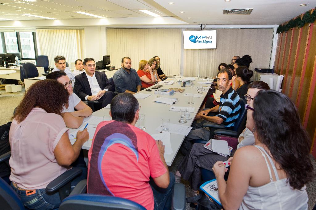 O procurador-geral de Justiça do Estado do Rio de Janeiro, Eduardo Gussem, e a coordenadora da Assessoria de Direitos Humanos e Minorias (ADHM/MPRJ), promotora de Justiça Eliane de Lima Pereira, receberam, na manhã desta segunda-feira (19/12), um grupo de lideranças comunitárias, representantes de movimentos sociais e mães que perderam filhos vítimas de violência em comunidades. Eduardo Gussem ressaltou que o MPRJ está aberto para ouvir os anseios da sociedade e buscar maneiras de atender às demandas da população. Como a violência em favelas e comunidades é uma questão recorrente e complexa, decidiram criar uma agenda de encontros periódicos para abordar o assunto. O próximo foi marcado para a primeira semana de fevereiro.
