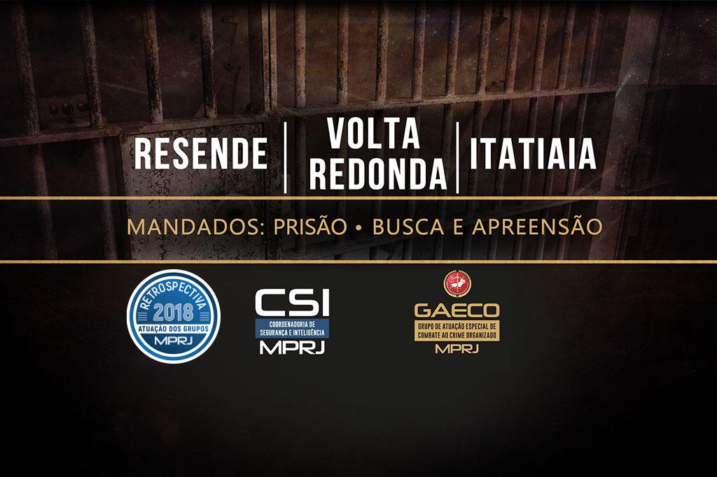 As ações foram ajuizadas junto ao Juízo da Auditoria Militar (0117074-43.2018.8.19.0001), à 2ª Vara Criminal de Volta Redonda (0021702-03.2017.8.19.0066) e à Vara Única de Itatiaia (0002200-33.2017.8.19.0081), que também deferiram mandados de busca e apreensão na residência dos acusados e em celas de presos. Participam da operação 310 policiais federais, 38 agentes da CSI e cerca de 300 policiais da PMERJ.