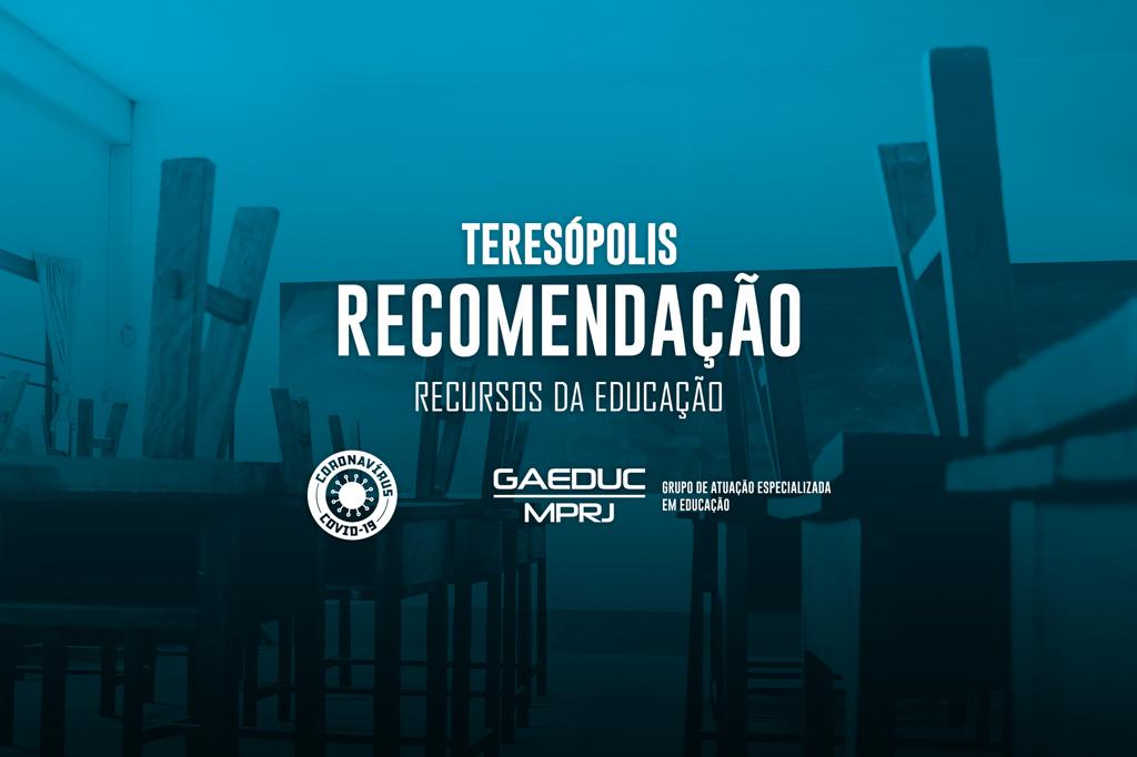 O Ministério Público do Estado do Rio de Janeiro (MPRJ), por meio do Grupo de Atuação Especializada em Educação (GAEDUC/MPRJ), expediu nesta sexta-feira (24/04) recomendação ao prefeito de Teresópolis, Vinicius Claussen, ao secretário municipal de Educação, Álvaro Chrispino, ao secretário municipal de Fazenda, Fabiano Latini, e ao secretário municipal de Administração, Lucas Pacheco, para que, entre outras medidas, o município não efetue gastos com recursos orçamentários destinados à Educação para a aquisição de kits ou cestas básicas durante o período de suspensão das atividades escolares por conta da pandemia do novo coronavírus (COVID-19), o que deverá ser feito com recursos próprios não vinculados.