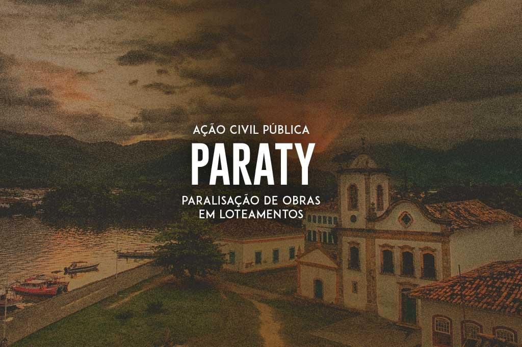 O Ministério Público do Estado do Rio de Janeiro (MPRJ), por meio da 1ª Promotoria de Justiça de Tutela Coletiva de Angra dos Reis, ajuizou ação civil pública (ACP) contra a Santa Edwiges Empreendimentos Imobiliários e o Município de Paraty para que sejam paralisadas as obras nos loteamentos Jardim Porto Canoas e Quintas do Guianases, em Paraty, até que apresentem relatório técnico de estudo de impacto ambiental (EIA/RIMA) e de caracterização hidrogeológica-hidrodinâmica, além de levantamento fitossociológico da área impactada.