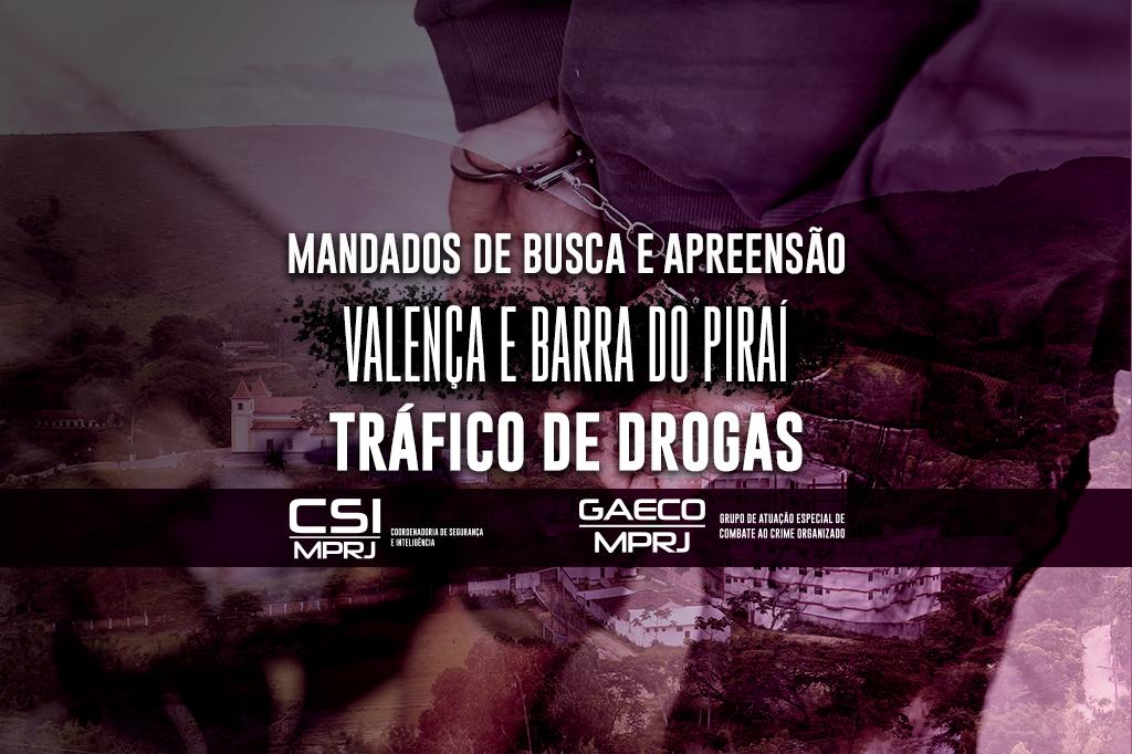 Após investigação conjunta, o MPRJ denunciou 36 pessoas ligadas à facção criminosa Comando Vermelho pelos crimes de tráfico de drogas e associação para o tráfico. De acordo com as apurações, os denunciados atuavam na preparação, produção, aquisição, venda, transporte e fornecimento de drogas em diversas localidades de Barra do Piraí e Valença, sendo que os crimes muitas vezes eram cometidos com o emprego de arma de fogo e com a participação de adolescentes.