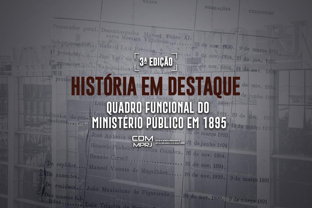O Ministério Público do Estado do Rio de Janeiro (MPRJ), por meio do Centro de Memória Procurador de Justiça João Marcello de Araújo Júnior (CDM/MPRJ), apresenta, na 3ª edição do projeto História em Destaque, o quadro funcional do Ministério Público do Distrito Federal na data de 15 de abril de 1895. Com apenas 15 membros no MP, o documento revela característica da instituição recém nascida com a República e mostra sua organização inicial.