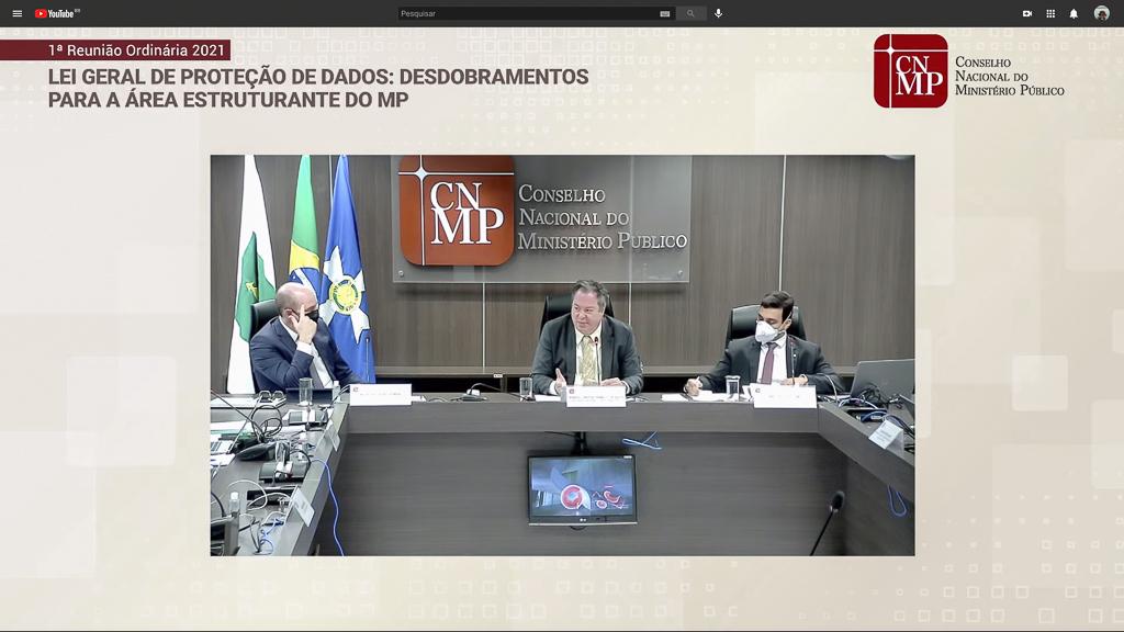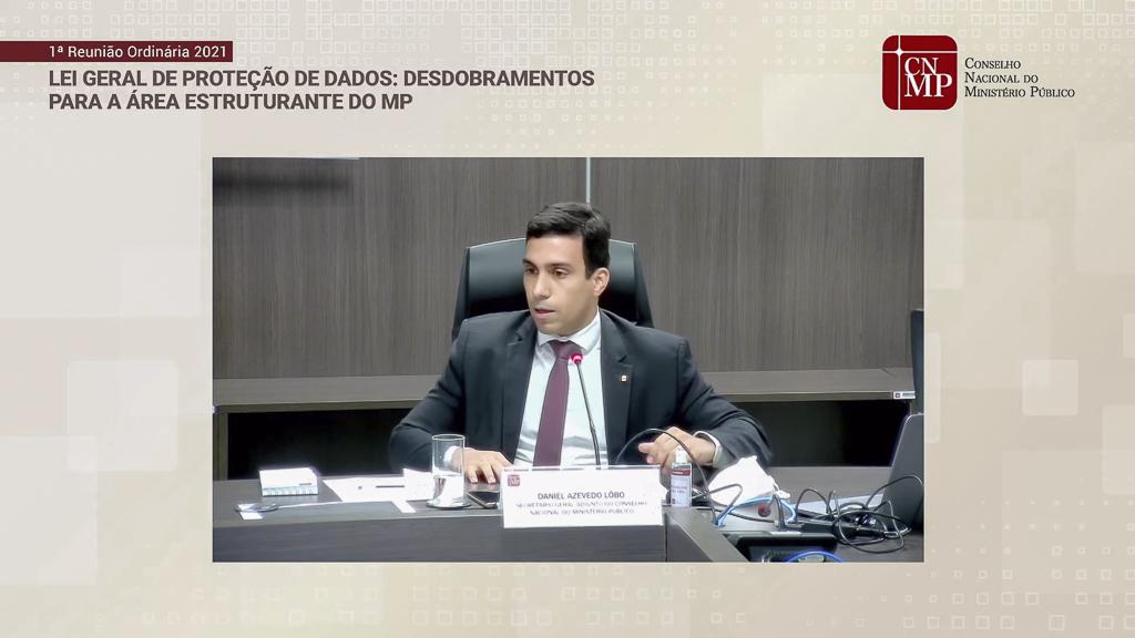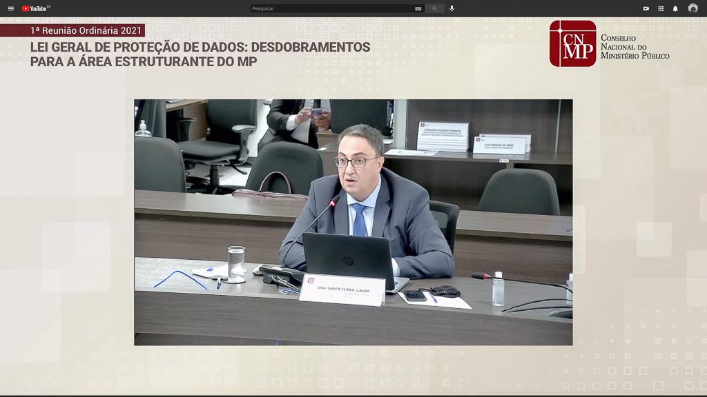 Para finalizar a programação da manhã da 1ª Reunião Ordinária de 2021 do Fórum Nacional de Gestão do Ministério Público, o promotor de Justiça João Santa Terra Júnior e o secretário-geral adjunto do CNMP, Daniel Azevedo Lôbo, apresentaram a estrutura do Ministério Público e do CNMP para a tutela do direito fundamental à proteção de dados pessoais.