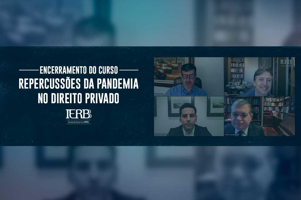 O Ministério Público do Estado do Rio de Janeiro (MPRJ), por meio do Instituto de Educação Roberto Bernardes Barroso (IERBB/MPRJ), realizou, nesta quarta-feira (23/06), com transmissão aberta pelo Youtube, a terceira aula do curso de capacitação “Repercussões da Pandemia no Direito Privado”. Este último dia contou com palestras do procurador de Justiça do MPSP Nelson Rosenvald, presidente do Instituto Brasileiro de Estudos de Responsabilidade Civil (Iberc), e do procurador de Justiça Guilherme Martins, professor da UFRJ.