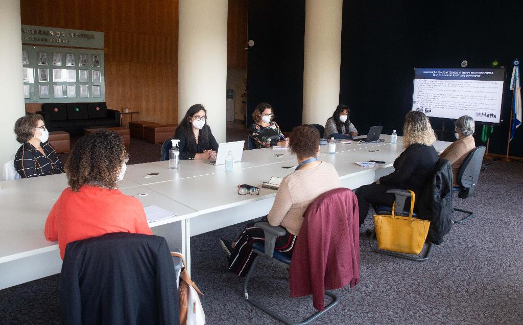 Participaram da reunião, pelo MPRJ, a coordenadora-geral de Promoção da Dignidade da Pessoa Humana, Patrícia Leite Carvão, a coordenadora de Promoção dos Direitos das Vítimas, Valéria de Sousa Linck, e as servidoras da CDV/MPRJ, Meimei de Oliveira, Cristiane Spêdo e Elisa Nolasco. Pelo SMAS, estiveram presentes a coordenadora de Média e Alta Complexidade da subsecretaria, Soraia Gomes, a gerente de Média Complexidade do órgão, Maria Beatriz Carvalho Teixeira, e a assessora da Gerência de Alta Complexidade, Maria José Gueivara.