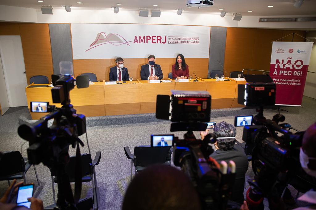 A Procuradoria-Geral de Justiça do Estado do Rio de Janeiro e a Associação do Ministério Público do Estado do Rio de Janeiro (AMPERJ) promoveram um ato público contra a Proposta de Emenda à Constituição nº 5 de 2021 (PEC 5/2021) em tramitação no Congresso Nacional. A PEC altera a composição do Conselho Nacional do Ministério Público (CNMP), abre brechas para a interferência política na instituição, entre outras medidas prejudiciais à atuação do MP em defesa da sociedade. O ato, coordenado pelo Conselho Nacional de Procuradores-Gerais de Justiça (CNPG), pela Associação Nacional dos Membros do Ministério Público (CONAMP) e demais entidades do MP, integrou uma série de manifestações realizadas, nesta quarta-feira (13/10), em todo o país, buscando alertar a sociedade para os prejuízos ao combate à corrupção e à impunidade, caso o texto seja aprovado pelo parlamento. Foram registradas manifestações em pelo menos 19 outros estados.
