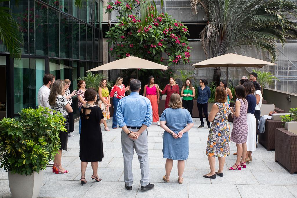 Após a aula, alunos, professores e a coordenação técnica do curso, incluindo o diretor do IERBB/MPRJ, Leandro Navega, reuniram-se no edifício-sede do MPRJ para uma dinâmica de grupo.