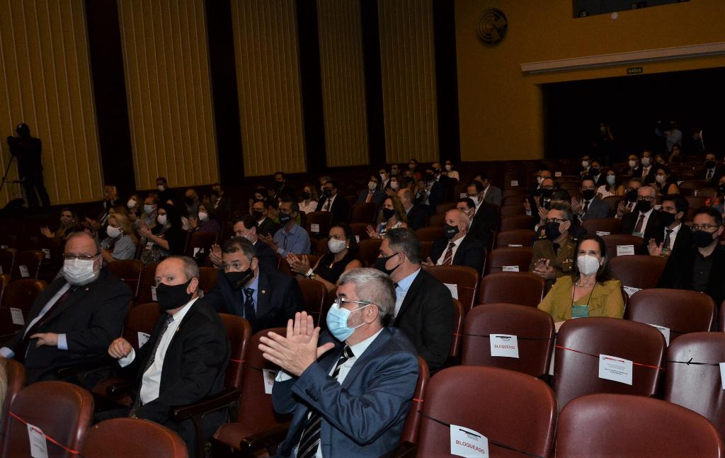 Também em participação virtual, pelo telão montado no Cine Teatro Tiradentes, o governador de Minas, Romeu Zema, desejou um ótimo evento aos participantes e destacou a importância do relacionamento entre seu governo e o MPMG, peça vital em sua gestão. Ele citou como exemplos o acordo fechado no caso do rompimento da barragem de Brumadinho (2019), no montante de R$ 36 bilhões, além da tragédia similar ocorrida em Mariana (em 2015) e dos repasses devidos aos municípios mineiros na área da Saúde. "É bom saber que o MPMG tem sido parceiro no sentido de fazer com que todas essas ações tenham um desenrolar mais rápido", afirmou ele, referindo-se ainda ao tema do congresso. "Minas tem conseguido diminuir os índices de criminalidade. Assumimos o lugar de estado mais seguro do país, também numa estratégia cumprida em colaboração com o Ministério Público".