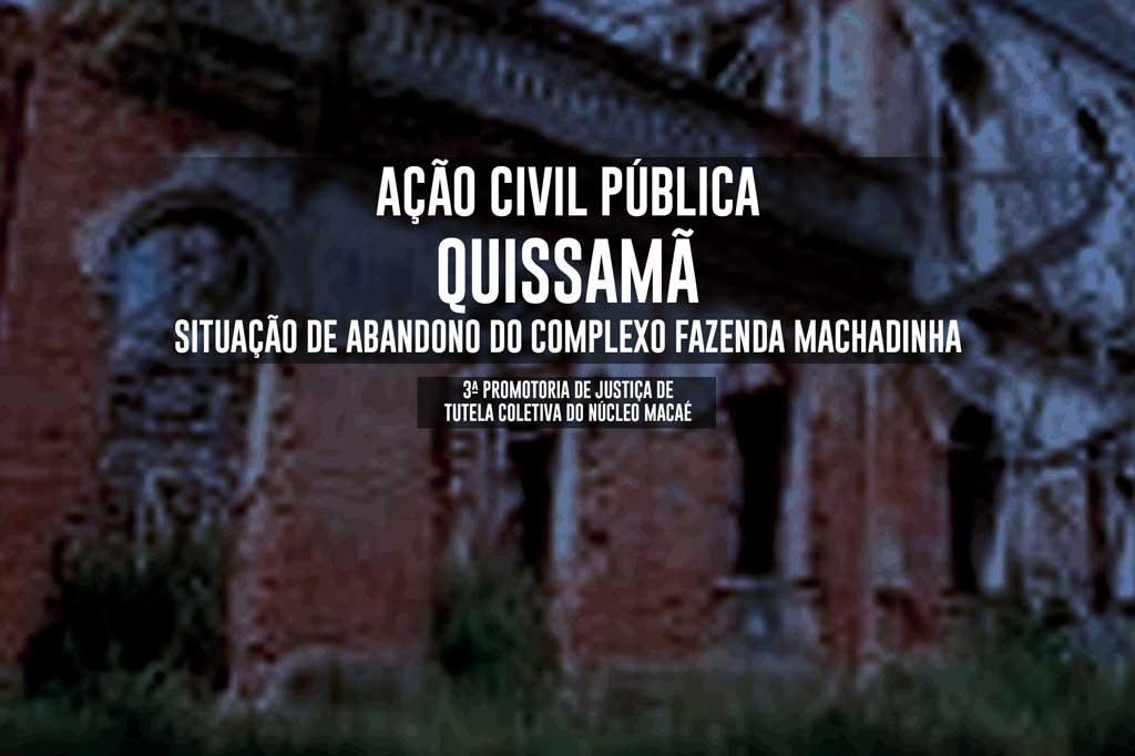 O Ministério Público do Estado do Rio de Janeiro (MPRJ), por meio da 3ª Promotoria de Justiça de Tutela Coletiva do Núcleo Macaé, ajuizou ação civil pública para que o Município de Quissamã tire da situação de abandono o Complexo Fazenda Machadinha, local com grande valor histórico e tombado pelo Instituto Estadual do Patrimônio Cultural (INEPAC). Construída no século XIX, a fazenda de cana-de-açúcar pertenceu a Manuel Carneiro da Silva e sua mulher, Ana do Loreto Carneiro Viana de Lima, filha caçula de Luís Alves de Lima e Silva, o Duque de Caxias, hóspede na fazenda em várias ocasiões. Ainda hoje, descendentes de escravos vivem na Fazenda Machadinha.