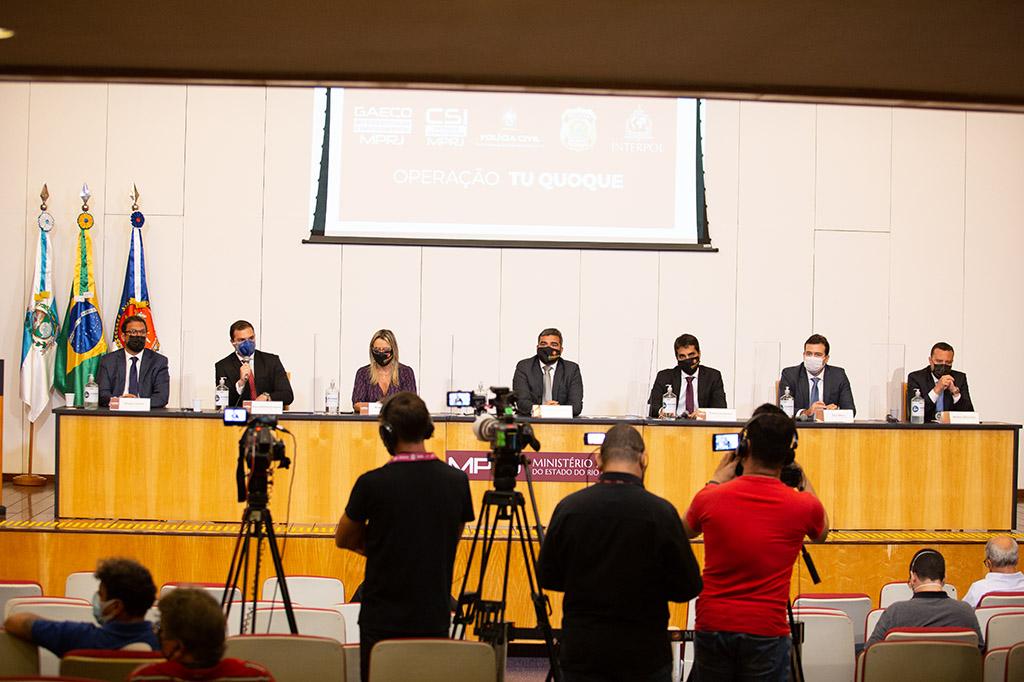 Na segunda-feira (31/01), o MPRJ realizou entrevista coletiva de imprensa na sede do MPRJ. Na ocasião, os promotores de Justiça Bruno Gangoni, coordenador do GAECO/MPRJ; Eduardo Campos, coordenador da CSI/MPRJ; Roberta Laplace, Fabiano Cossermelli e Carlos Eugênio Laureano prestaram informações sobre as investigações e a prisão de Bernardo Bello. Também participaram da coletiva o titular da DHC, Henrique Damasceno; e o superintendente Regional da PF/RJ, Tácio Muzzi.