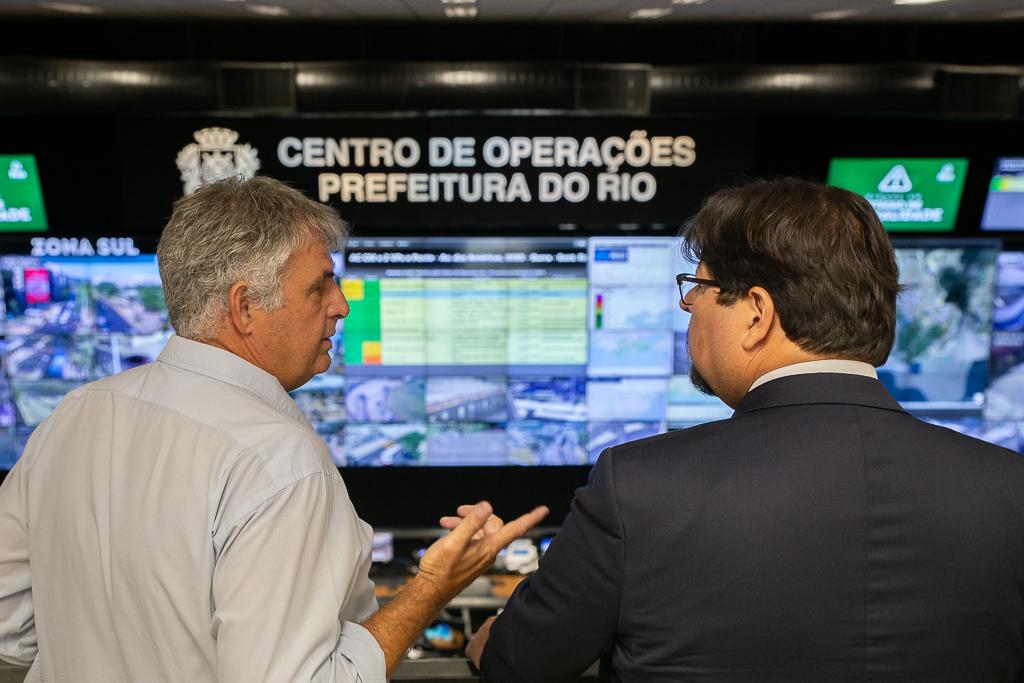 O procurador-geral de Justiça, Luciano Mattos, fez uma visita de cortesia, nesta quinta-feira (17/03), às instalações do Centro de Operações Rio, órgão que reúne as principais estruturas da prefeitura do Rio de Janeiro, no bairro do Estácio. Recebido pelo Chefe Executivo de Resiliência e Operações do município, Alexandre Cardeman, o PGJ assistiu a uma apresentação sobre os serviços prestados pelo órgão municipal e ressaltou a importância da interlocução entre os entes públicos.