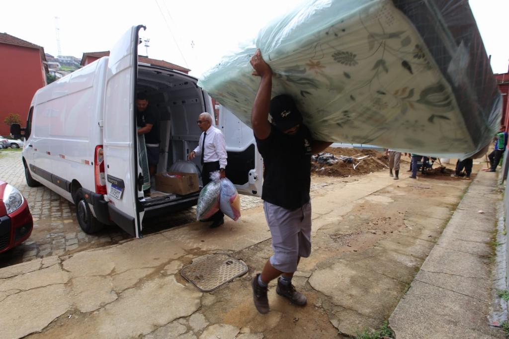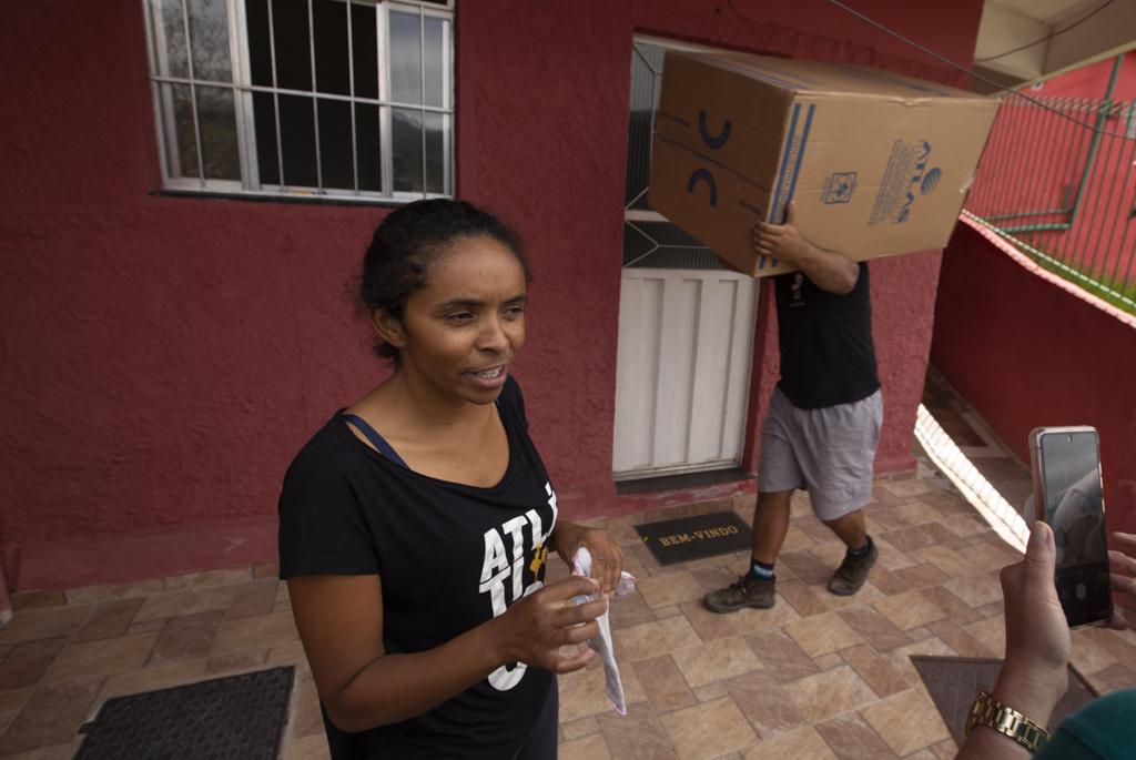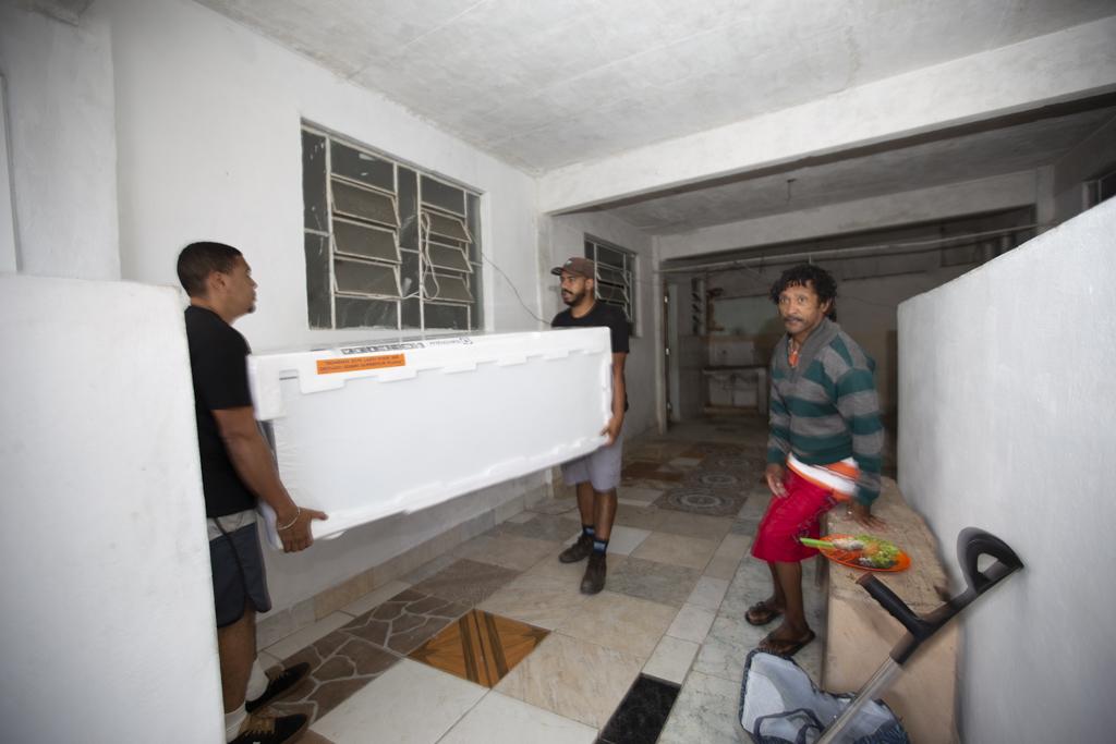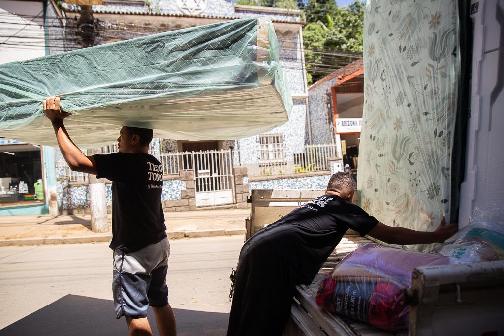Dona Gisele morava com o marido e os três filhos pequenos no bairro Vila Militar. A casa dela foi interditada e todos os móveis, eletrodomésticos e objetos pessoais foram deixados para trás. "Sair de casa foi o pior momento da minha vida, tivemos que descer correndo porque disseram que ia vir mais chuva e existia risco. Minha família precisava muito dessas doações que recebemos. Eu estava dormindo no chão com os meus filhos, estava sem geladeira. Tenho esperança de uma vida nova", afirma dona Gisele. Seu Mauro Severino, carpinteiro, também teve que sair da casa onde morava em área de risco, no bairro Vila Felipe. A nova moradia ganhou cama, geladeira, fogão e lavadora de roupas.