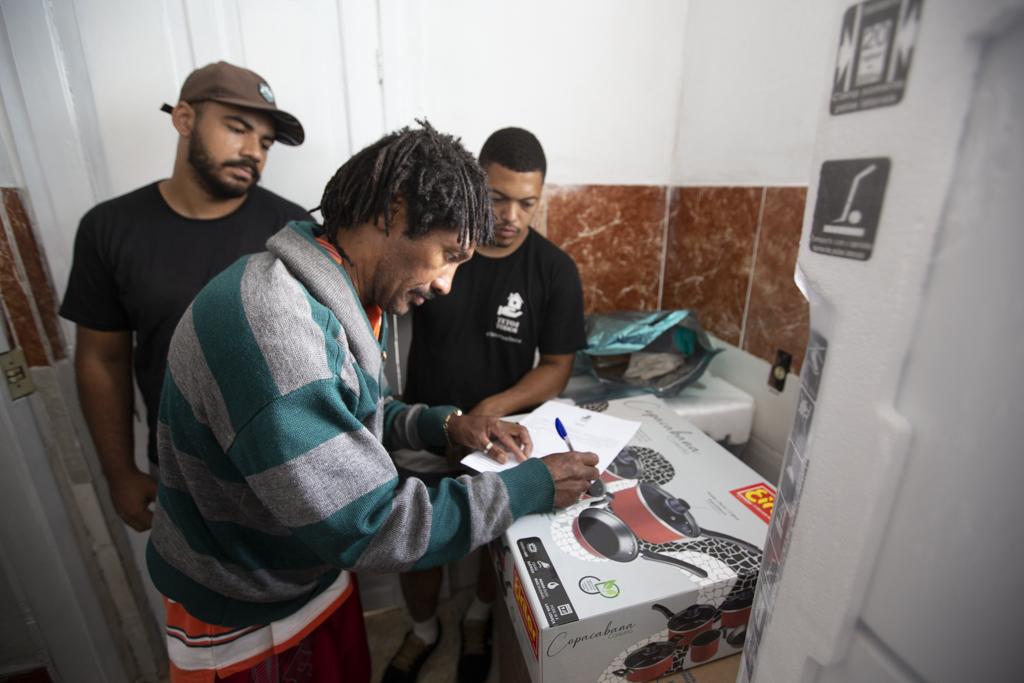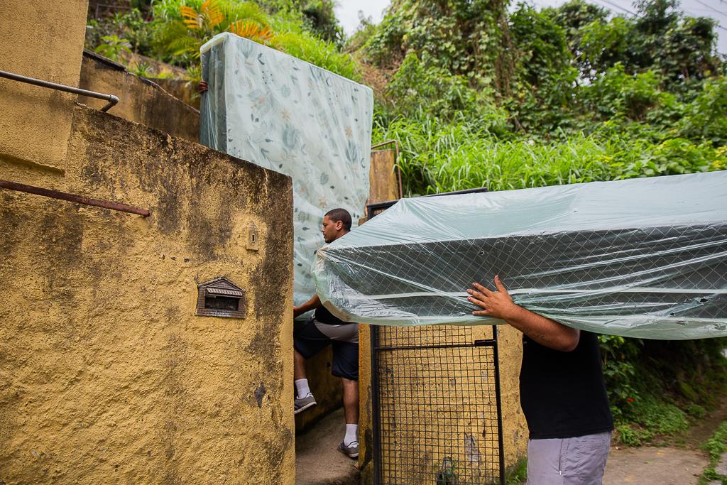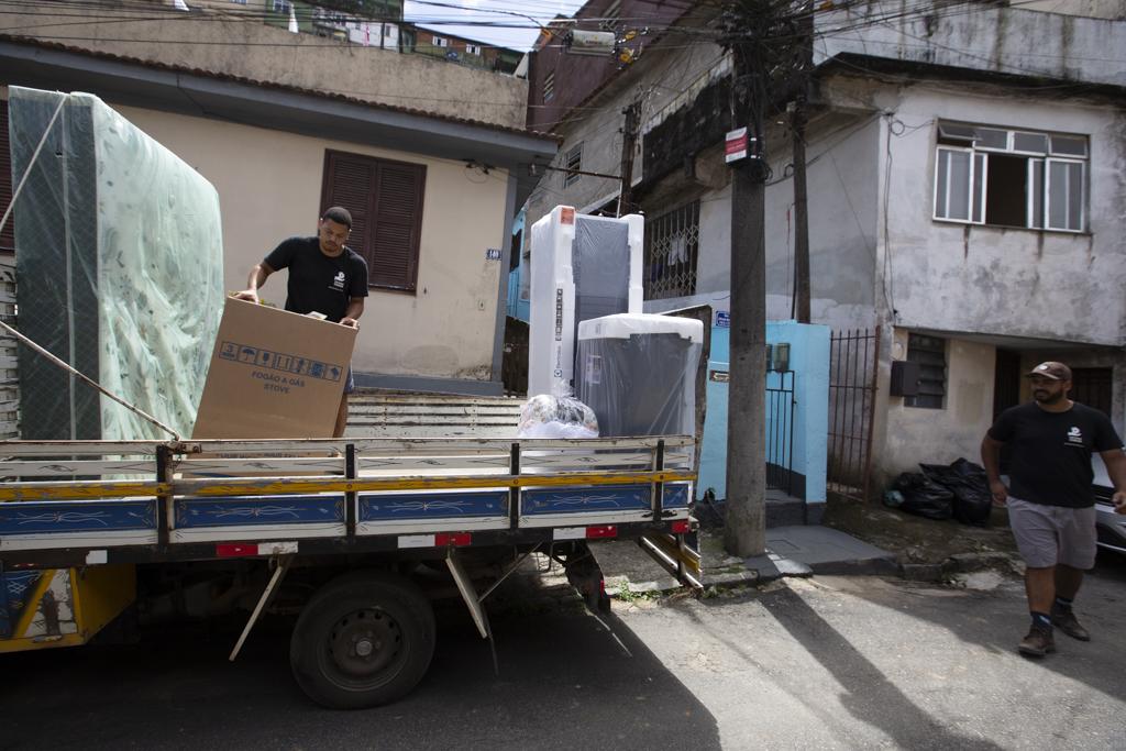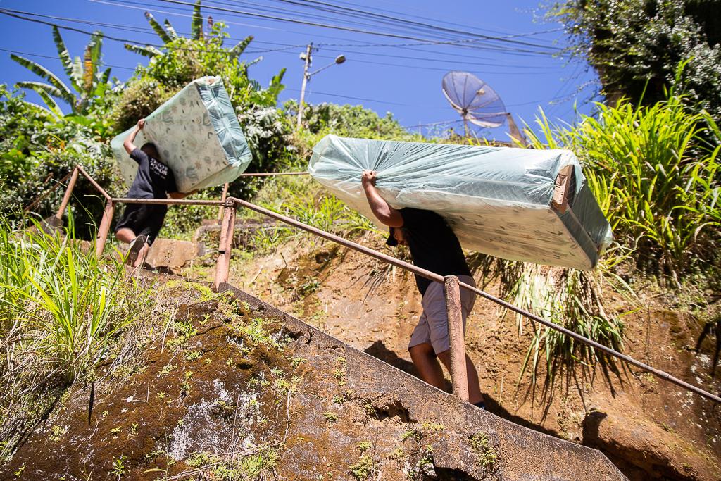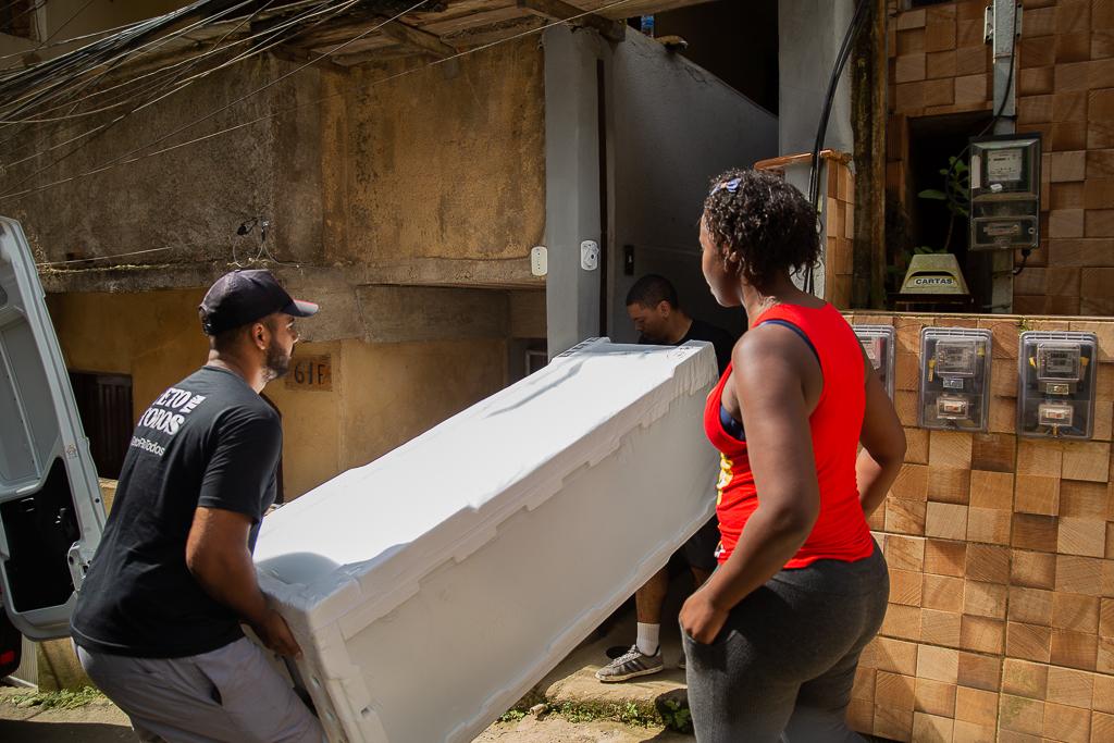 Dona Gisele morava com o marido e os três filhos pequenos no bairro Vila Militar. A casa dela foi interditada e todos os móveis, eletrodomésticos e objetos pessoais foram deixados para trás. "Sair de casa foi o pior momento da minha vida, tivemos que descer correndo porque disseram que ia vir mais chuva e existia risco. Minha família precisava muito dessas doações que recebemos. Eu estava dormindo no chão com os meus filhos, estava sem geladeira. Tenho esperança de uma vida nova", afirma dona Gisele. Seu Mauro Severino, carpinteiro, também teve que sair da casa onde morava em área de risco, no bairro Vila Felipe. A nova moradia ganhou cama, geladeira, fogão e lavadora de roupas.