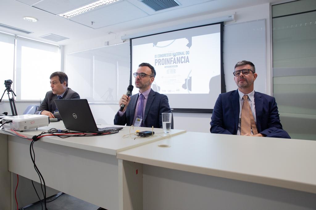 A mesa de abertura contou com as presenças dos promotores de Justiça Rodrigo Medina, coordenador do CAO Infância e Juventude/MPRJ Matéria Não Infracional; Leandro Navega, diretor do IERBB/MPRJ e Karel Ozon do MPDFT, um dos coordenadores do Fórum Nacional dos Membros do Ministério Público da Infância e Adolescência (Proinfância), em conjunto com Alexandra Beurlen do MPAL e Luciana Caiado do MPRJ, que também coordena a Comissão de Financiamento das Políticas Públicas.