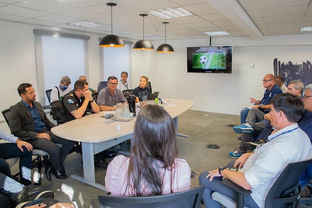 Realizada na sede do GATE/MPRJ, a reunião teve como objetivo coletar as demandas apresentadas por Botafogo e Vasco para que sejam criados planos de ação personalizados para os estádios Nilton Santos e São Januário, considerando as características urbanas de seus entornos. Na pauta, foram discutidas questões como mobilidade, efetivos de agentes de segurança, ordenamento urbano e horários dos jogos.