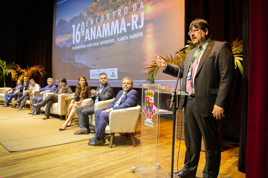 O procurador-geral de Justiça integrou a mesa de abertura do evento ao lado do prefeito de Niterói, Axel Grael; do presidente da ANAMMA nacional, Marçal Cavalcanti; da presidente da ANAMMA RJ, Alice Hagge; do presidente do Instituto Estadual do Ambiente (INEA), Philipe Campello; do superintendente do Instituto Brasileiro do Meio Ambiente no Rio (IBAMA RJ), Daniel Charliton Rodrigues; do secretário de Estado do Ambiente, José Ricardo Brito; do secretário de Meio Ambiente, Recursos Hídricos e Sustentabilidade de Niterói, Rafael Robertson; do presidente da Comissão Permanente de Meio Ambiente, Recursos Hídricos e Sustentabilidade na Câmara Municipal de Niterói, Leandro Portugal e do presidente da Fundação Florestal de São Paulo e diretor de Relações Institucionais da ANAMMA, Mário Mantovani. “Gostaria de saudar a todos os presentes e agradecer a oportunidade de estarmos aqui reunidos, em Niterói. A ANAMMA tem uma única bandeira: a defesa do Meio Ambiente. Esse é um encontro de ideias, de busca de soluções, de troca de experiências com os municípios”, disse Marçal Cavalcanti.