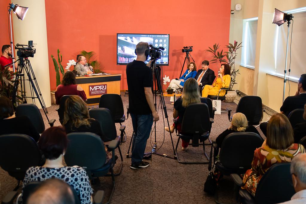 O Ministério Público do Estado do Rio de Janeiro (MPRJ), por meio do Centro de Memória Procurador de Justiça João Marcello de Araújo Júnior (CDM/MPRJ), realizou, na quinta-feira (05/05), a gravação da 17ª edição do projeto Personalidades do MPRJ. Gravado no foyer do 9º andar do edifício-sede, o programa teve como convidados o procurador-geral de Justiça, Luciano Mattos, e as procuradoras de Justiça Patrícia Silveira da Rosa e Rosani da Cunha Gomes, e tratou do tema 'Promotoria do Meio Ambiente: uma questão de sobrevivência'.