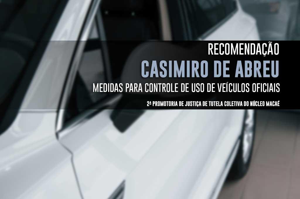 O Ministério Público do Estado do Rio de Janeiro (MPRJ), por meio da 2ª Promotoria de Justiça de Tutela Coletiva do Núcleo Macaé, expediu, nesta terça-feira (17/05), Recomendação ao presidente da Câmara Municipal de Casimiro de Abreu para que sejam adotadas providências para a correta utilização de veículos oficiais por parte dos vereadores do município.