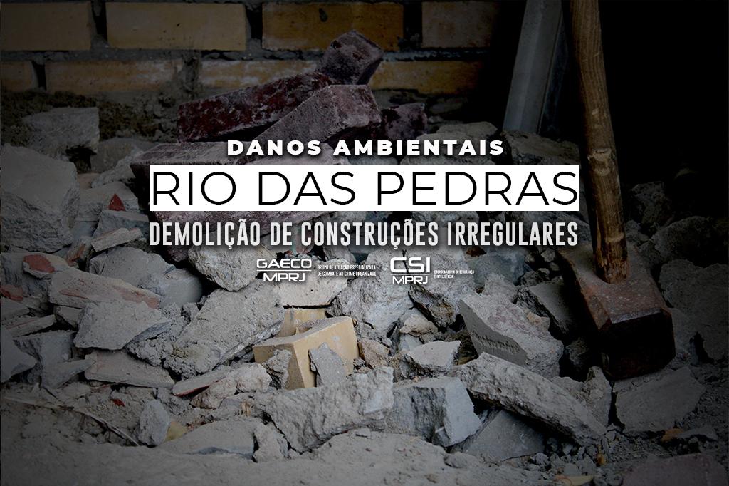 A Força-Tarefa (GAECO/FT-OIS) avança também no combate a uma das principais fontes de renda das milícias: a exploração imobiliária ilegal, em regiões por elas dominadas, como Rio das Pedras. Em sete meses, foram feitas diversas operações para demolição de construções ilegais em áreas sob influência de criminosas. Nesse período, já foram colocados abaixo shoppings, prédios residenciais, casas de show, lava-jatos, quiosques, estacionamentos e bares, entre outros. O resultado é um prejuízo estimado em mais de R$ 45 milhões para as organizações criminosas.
