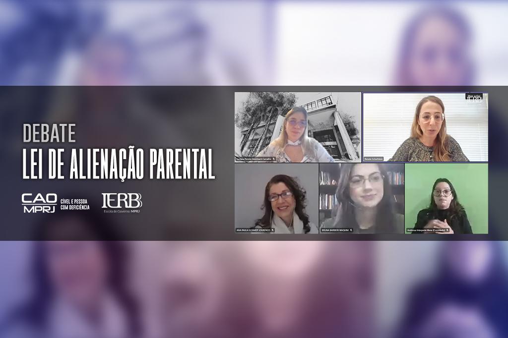 O Ministério Público do Estado do Rio de Janeiro (MPRJ), por meio do Instituto de Educação Roberto Bernardes Barroso (IERBB/MPRJ), Centro de Apoio Operacional das Promotorias de Justiça Cíveis e Pessoa com Deficiência (CAO Cível e Pessoa com Deficiência/MPRJ), e coordenação da pós-graduação “Crianças, Adolescentes e Famílias” do IERBB/MPRJ, promoveu, na sexta-feira (10/06), a palestra virtual "Mudanças na Lei de Alienação Parental: Um Debate Necessário”. O encontro discutiu medidas para aprimorar a atuação na garantia dos direitos das crianças e adolescentes.