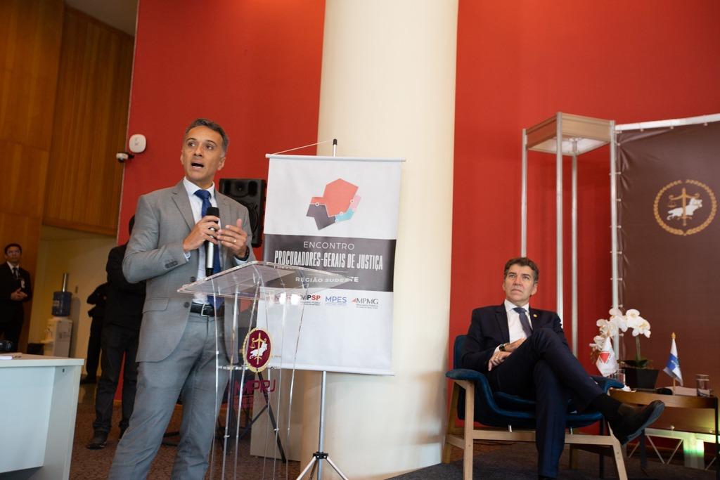 Na área de recursos hídricos, houve apresentação de iniciativas conjuntas para tratar do licenciamento de empreendimentos de risco, com possíveis repercussões interestaduais (como grandes barragens, cujo colapso pode impactar rios em mais de um estado), medidas para a conservação e recuperação das áreas de interesse de proteção de mananciais em bacias hidrográficas que abrangem mais de um estado (Rio Doce e Paraíba do Sul, por exemplo); proposta de qualificação técnica de membros e servidores, entre outras ações. Em seguida, no tema segurança pública, foi debatido o compartilhamento de bancos de dados e de ferramentas de tecnologia para aprimorar o combate à criminalidade. Essa troca de dados entre os MPs já foi iniciada para fomentar ações conjuntas nos quatro estados. "O crime está organizado. É fundamental que nós também tenhamos uma organização que nos permita trocar informações rápidas e dar respostas mais céleres", ressaltou Mario Sarrubbo, que complementou: "E falo em organização entre os nossos Ministérios Públicos do Sudeste. E, mais do que isso, que cada Ministério Público tenha também uma integração efetiva com as forças de polícia. Dessa forma, poderemos, juntos, fazer um combate efetivamente organizado contra a criminalidade, que tanto nos afeta".
