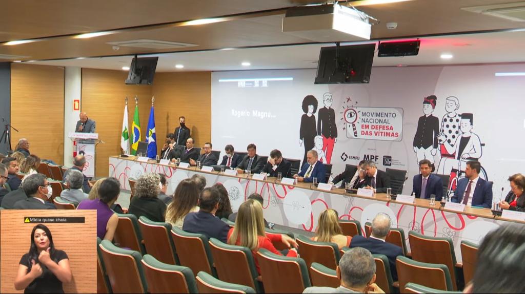 Em um ato simbólico, o presidente do CNMP, Augusto Aras, e a presidente do CNPG, Norma Angélica, assinaram o termo de adesão em defesa das vítimas. A coordenação do movimento está a cargo do subprocurador-geral de Justiça Militar, Marcelo Weitzel. A cerimônia foi transmitida pelo canal do YouTube da ESMPU para membros, servidores e colaboradores das unidades do Ministério Público de todo o Brasil. O evento contou com a participação e o depoimento de vítimas de casos que comoveram o país, como Ana Carolina Oliveira, mãe da menina Isabella Nardoni, assassinada pelo pai e pela madrasta em 2008, e de Arnaldo Manoel dos Santos, ex-presidente da Associação dos Moradores do Mutange, ligado ao caso do desastre geológico atribuído à extração de sal-gema em bairros de Maceió/AL. A professora e psicóloga Arielle Sagrillo Scarpati ministrou a palestra “Os impactos da violência: conhecimentos básicos para a escuta e acolhimento em contextos traumáticos”.