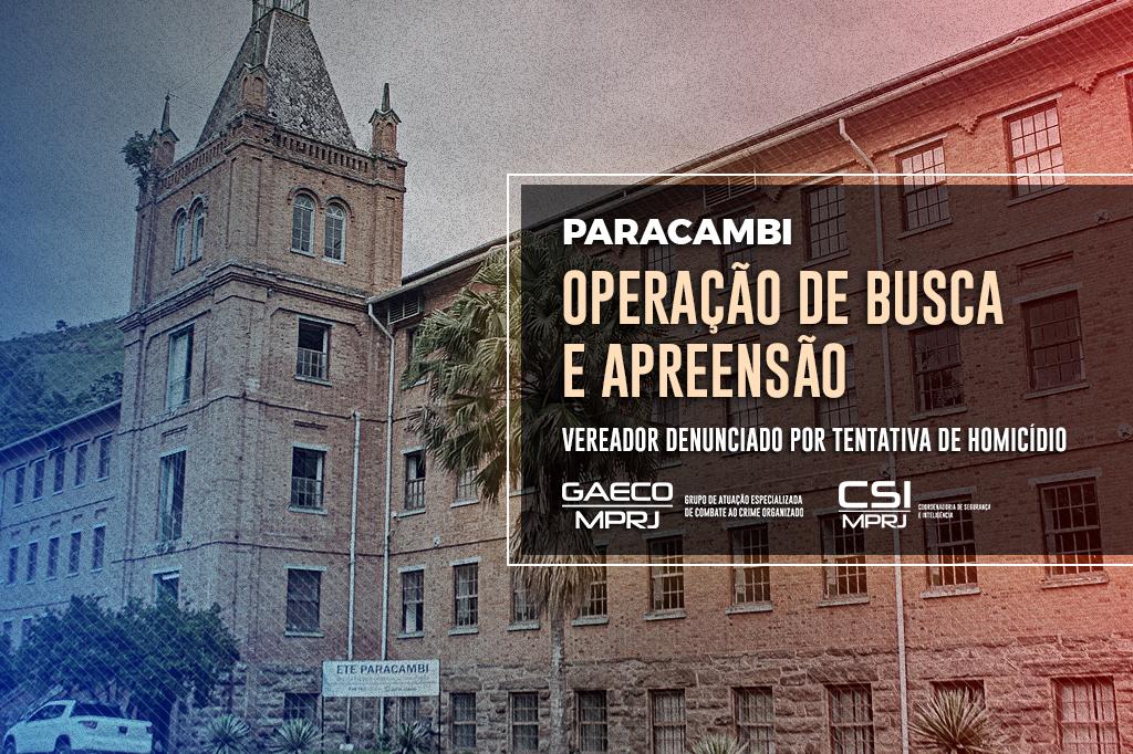 O Ministério Público do Estado do Rio de Janeiro (MPRJ), por meio do Grupo de Atuação Especializada de Combate ao Crime Organizado (GAECO/MPRJ), e com apoio da Coordenadoria de Segurança e Inteligência (CSI/MPRJ), realiza operação nesta terça-feira (28/06) para cumprir mandados de busca e apreensão em endereços ligados ao vereador Dário Vinícius Carvalho Braga, de Paracambi. De acordo com a denúncia, o vereador é o mandante de uma tentativa de homicídio ocorrida por conta de uma disputa política relacionada à eleição de 2020.