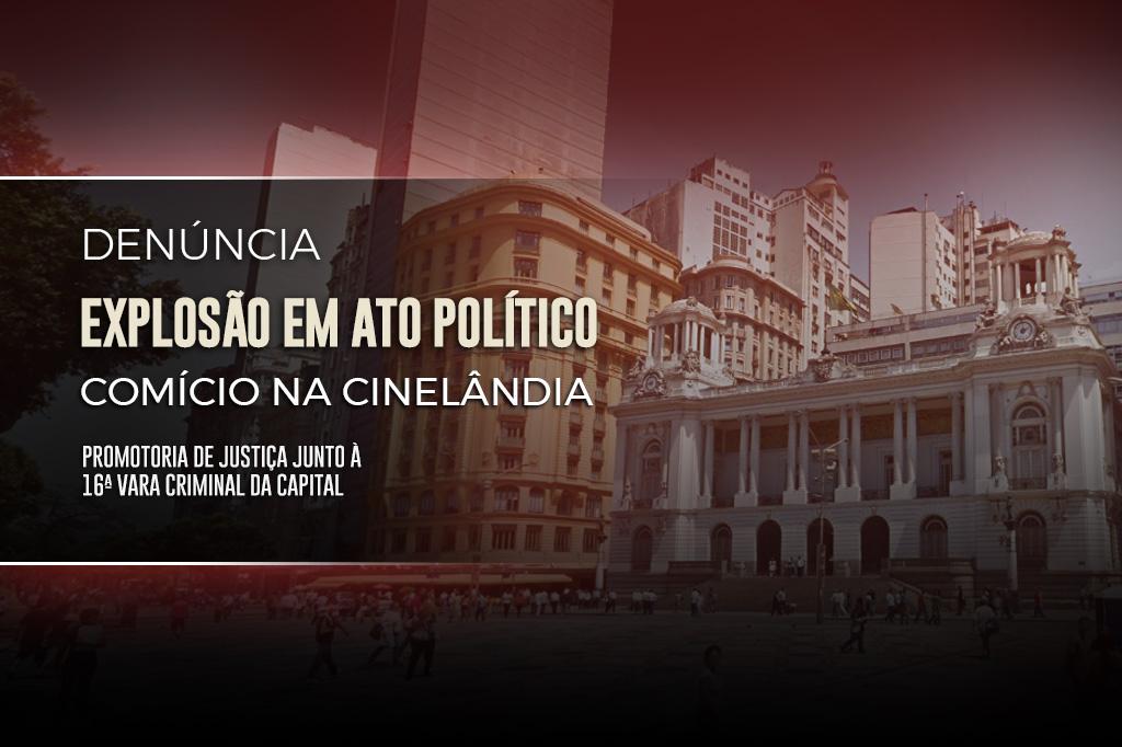 O Ministério Público do Estado do Rio de Janeiro (MPRJ), por meio da Promotoria de Justiça junto à 16ª Vara Criminal da Capital, denunciou o homem que arremessou uma bomba caseira durante um comício do Partido dos Trabalhadores, na última quinta-feira (07/07), na Cinelândia, Centro do Rio, com a presença do pré-candidato Luiz Inácio Lula da Silva. Ele irá responder pelo crime de explosão (art. 251), por expor a perigo a vida, a integridade física ou o patrimônio de pessoas.