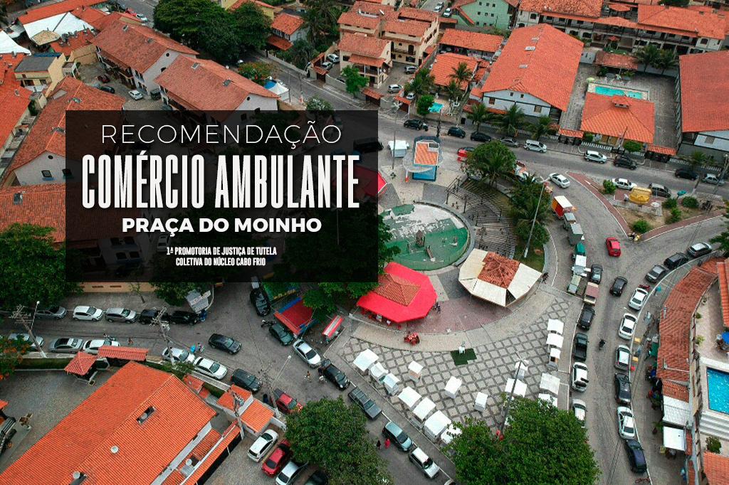 A 1ª Promotoria de Justiça de Tutela Coletiva do Núcleo Cabo Frio expediu, nesta quinta-feira (14/07), Recomendação ao prefeito de Cabo Frio para que revogue todas as licenças e autorizações concedidas para o exercício do comércio ambulante na Praça do Moinho, no bairro do Peró, e no seu entorno, incluindo as calçadas de ambos os lados das vias que a circundam. Recomenda ainda que agentes de fiscalização garantam que o espaço público seja mantido livre e desimpedido de estruturas móveis de comerciantes, viabilizando seu uso natural por toda a comunidade cabofriense. O MPRJ estabeleceu prazo de 15 dias para resposta à Recomendação.