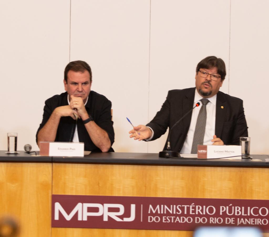 Nesta terça-feira (09/08), dia em que o Ministério Público do Estado do Rio de Janeiro (MPRJ) e a Prefeitura realizaram mais uma operação para demolir um prédio de seis andares construído irregularmente na região da Muzema, Zona Oeste do Rio, o procurador-geral de Justiça, Luciano Mattos, e o prefeito Eduardo Paes apresentaram o primeiro balanço das ações da Força-Tarefa do Grupo de Atuação Especializada no Combate ao Crime Organizado para Enfrentamento à Ocupação Irregular do Solo Urbano (GAECO/FT-OIS). A estrutura tem como objetivo minimizar os problemas ambientais decorrentes dessas ocupações e enfrentar a atuação do crime organizado. As informações foram divulgadas durante entrevista coletiva, realizada no auditório do prédio sede do MPRJ, no Centro da cidade.