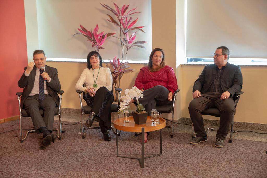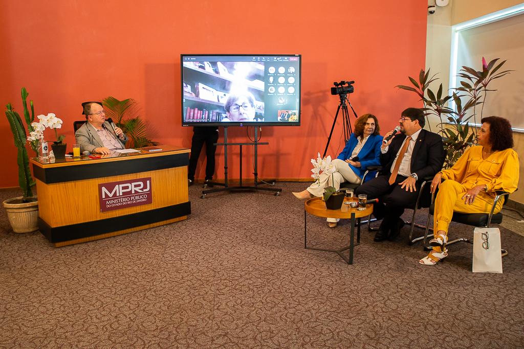 O Ministério Público do Estado do Rio de Janeiro (MPRJ), por meio do Centro de Memória Procurador de Justiça João Marcello de Araújo Júnior (CDM/MPRJ), realizou, na manhã desta terça-feira (23/08), a gravação da 18ª edição do projeto Personalidades do MPRJ. A gravação foi realizada no foyer do 9º andar do edifício-sede e teve como convidados os procuradores de Justiça Maria Amélia Barretto Peixoto e Renato Lisboa Teixeira Pinto, a promotora Fernanda Camara Torres Sodré e o servidor Rafael dos Santos Fonseca, que foram recebidos pelo procurador de Justiça Márcio Klang, para uma conversa sobre a influência do Estatuto da Criança e do Adolescente (ECA) na atuação das Promotorias de Infância e Juventude.
