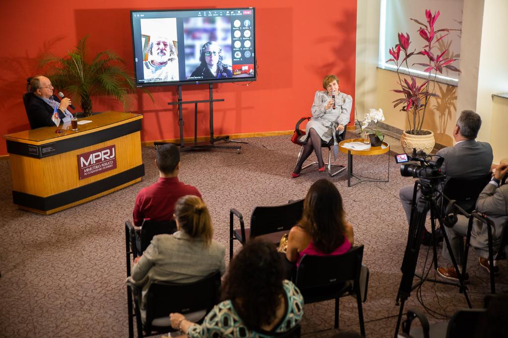 A promotora de Justiça Fernanda Sodré foi a terceira participante do programa e contou um pouco do seu trabalho à frente da coordenação da Força-Tarefa criada para a fiscalização de Unidades de Internação do Departamento Geral de Ações Socioeducativas (FT Degase/MPRJ): "O combate à violência institucional não é uma responsabilidade somente da infância. Por isso, queríamos trabalhar de forma articulada entre infância, investigação penal e cidadania, o tema da violência. Isso já estava para análise do PGJ quando foi noticiado um caso gravíssimo de abuso sexual dentro do Degase. Eu acredito que, quando a gente cria uma força-tarefa, a instituição está dando um recado de que ela elegeu esse tema como algo prioritário para acompanhamento do MP. e era esse o nosso foco. Não queríamos que a FT tivesse um trabalho só repressivo. Precisávamos também pensar um viés preventivo, criando fluxos de articulação entre essas promotorias tão importantes", disse.