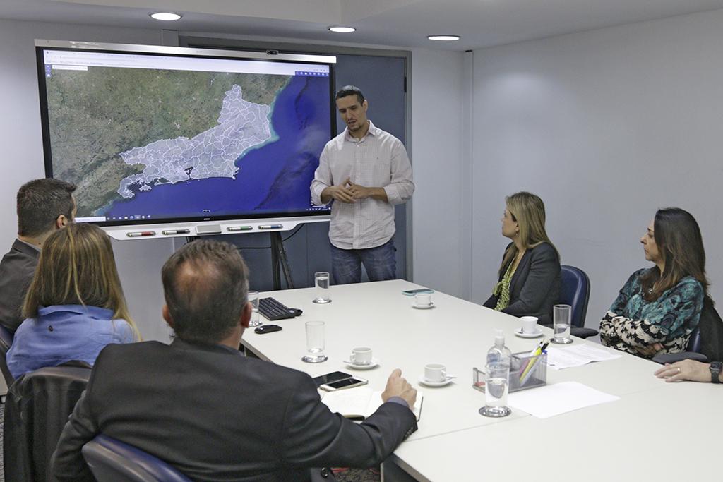 Ao longo da manhã, o grupo conheceu ferramentas desenvolvidas pela Gerência de Análise, Diagnóstico e Geoprocessamento (GADG/MPRJ). A primeira delas foi o Parquet Digital, uma plataforma de uso interno que utiliza sofisticados recursos de programação para auxiliar na gestão dos procedimentos em andamento em cada Promotoria de Justiça. O conceito é levar ao promotor alertas sobre produtividade, prazos, pendências e procedimentos em andamento, além de facilitar a tomada de decisões nesses procedimentos. Em seguida foram apresentados a ferramenta Gestão de Territórios, uma espécie de mapa interativo que engloba um rico banco de dados sobre o terreno e os equipamentos públicos em todos os municípios do estado. As informações são georreferenciadas e de fácil visualização, permitindo identificar, por exemplo, áreas sujeitas a alagamentos, construções em áreas protegidas, entre outras.