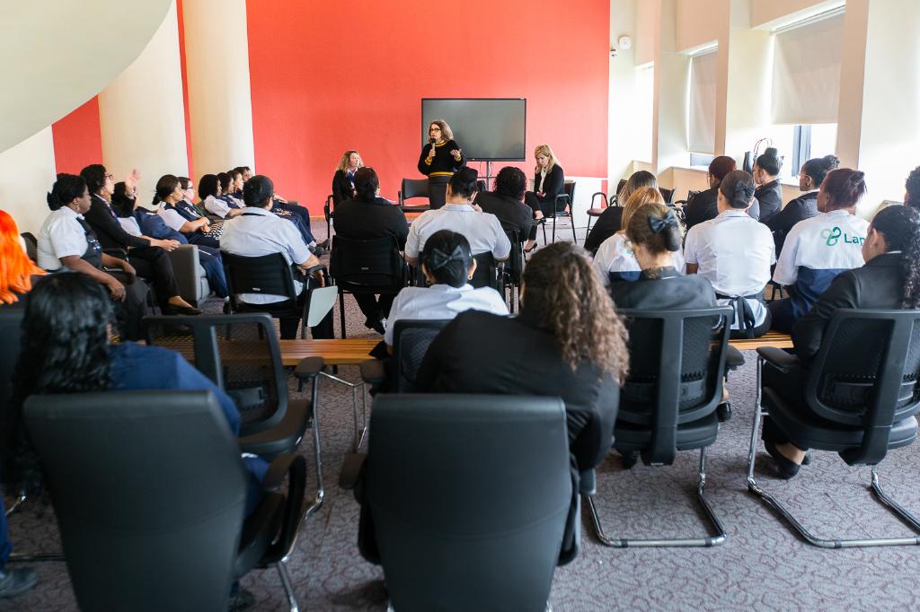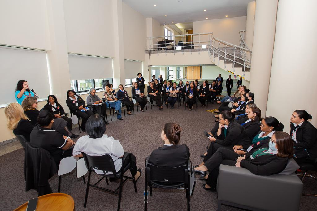 A roda de conversa foi dividida em dois grupos para que o maior número de funcionárias pudesse participar e tirar dúvidas sobre acolhimento, denúncia, direitos e canais de apoio. "Fizemos questão que pelo menos uma representante de cada setor estivesse aqui hoje. Assim, conseguiremos atingir as outras mulheres, repassando às colegas e amigas o conhecimento adquirido nesse encontro", ressaltou Carla Araújo.